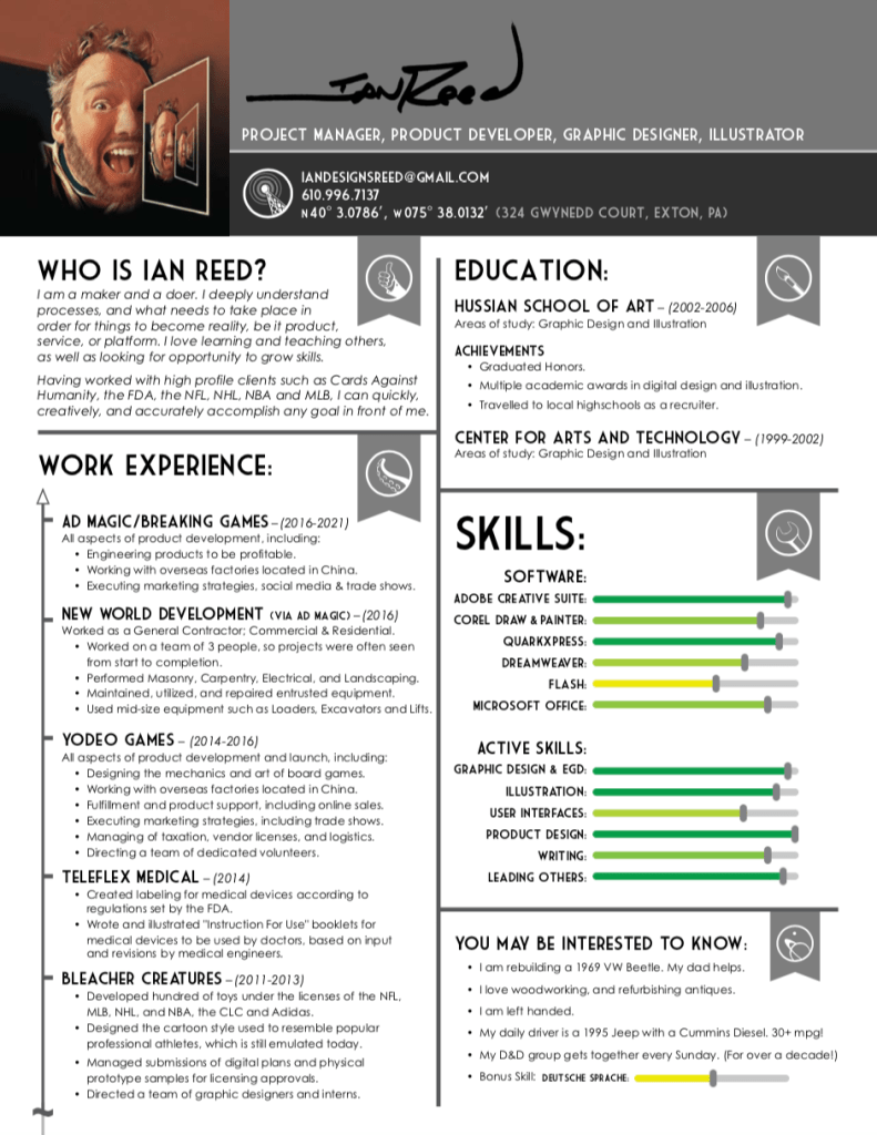 Here is my résumé as a downloadable .pdf file, if you need it that way. (Some do!) ianreed_resume_2021Download